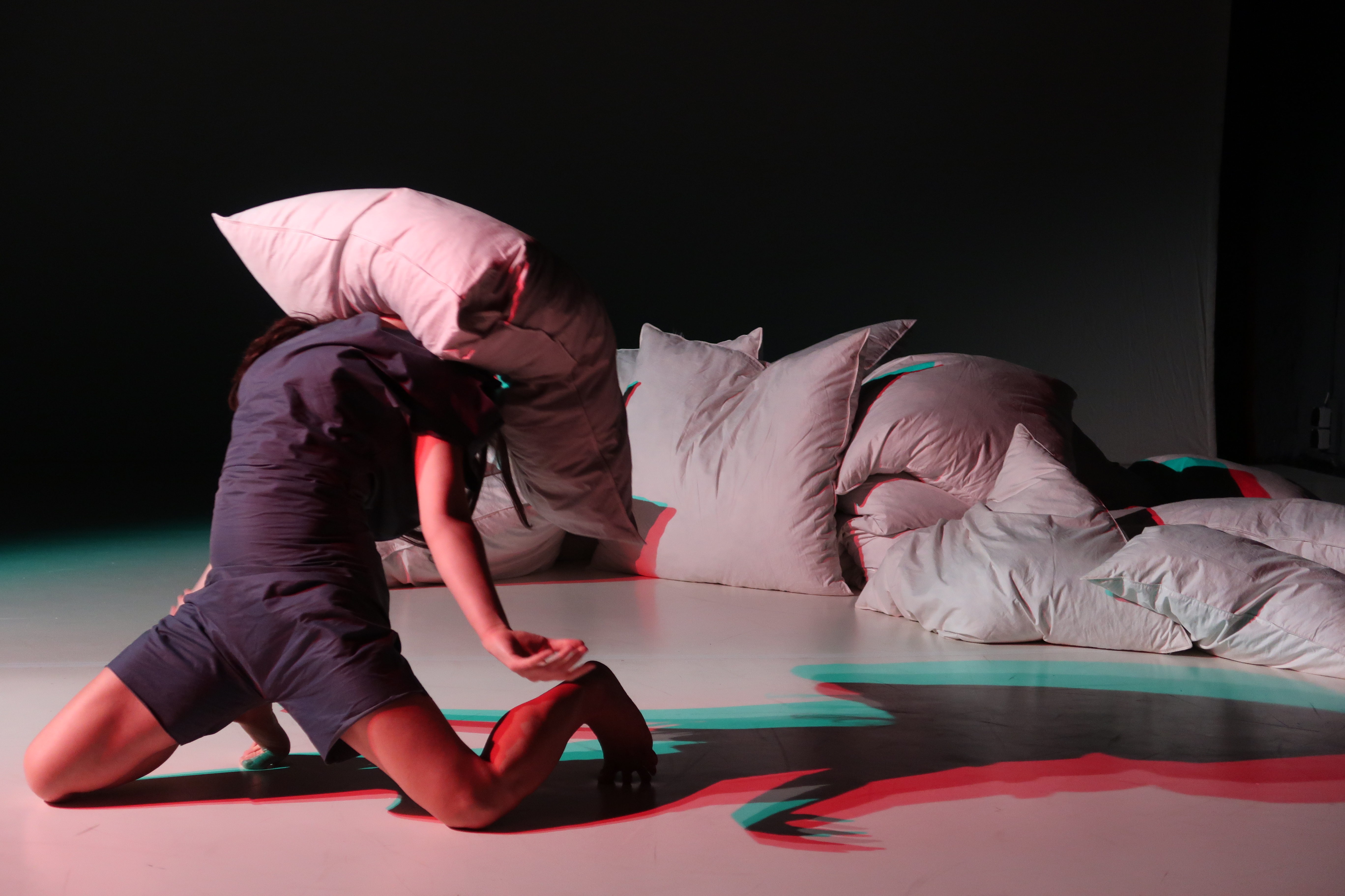 In One/shell the focus lays on the relationship of the person to his or her own living environment. A landscape of white pillows, abstractly represents the private space and serves as an experimental field whose material properties influence movement and posture of the body and at the same time evoke an emotional state. The choreographer uses the personal lockdown experience as inspiration for the further development of the project.